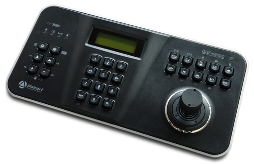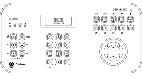 A mesa controladora Digifort DGF-KB1000 foi desenvolvida exclusivamente para o Sistema Digifort para dar maior rapidez e facilitar toda a sua operação, possibilitando eliminar teclado, mouse e joystick.